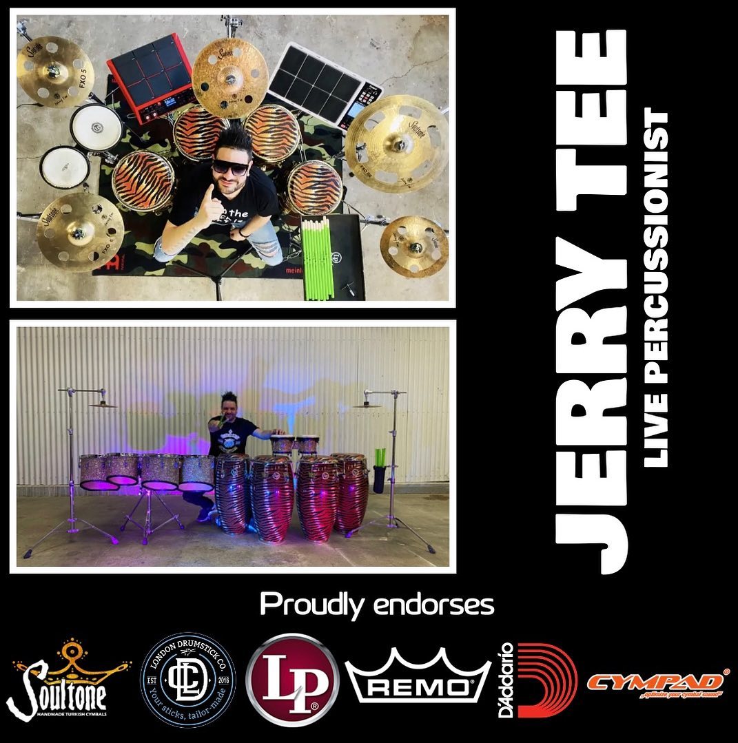 Jerry Tee Live Percussionist; One of the most charming and professional musicians in the business, a musical ambassador, never losing sight of his passion – playing music, breaking tunes, celebrating life, and always bringing new concept ideas into the music world!